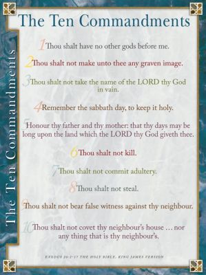 The ten commandments are the 10 basic laws that god commanded israel to obey in the old testament ten commandments kjv. The laws were given to moses by god, himself.